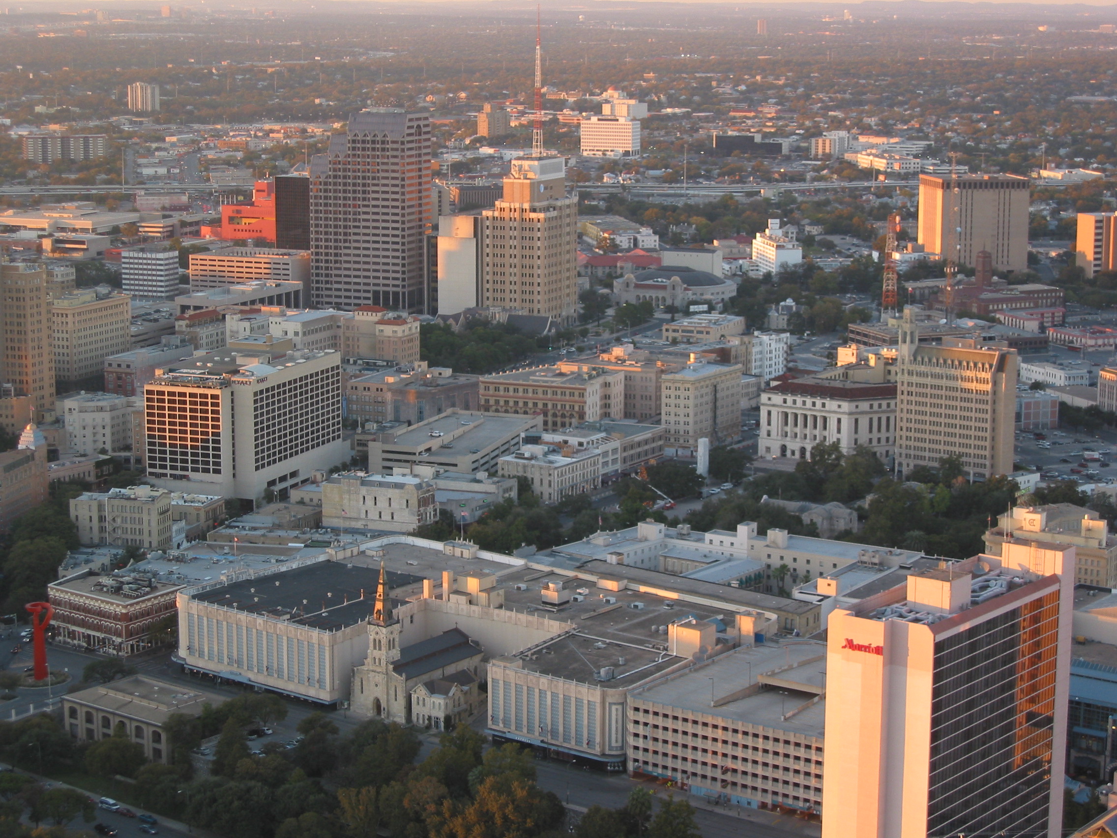you can see The Alamo. Just above the Marriott on the right side.
