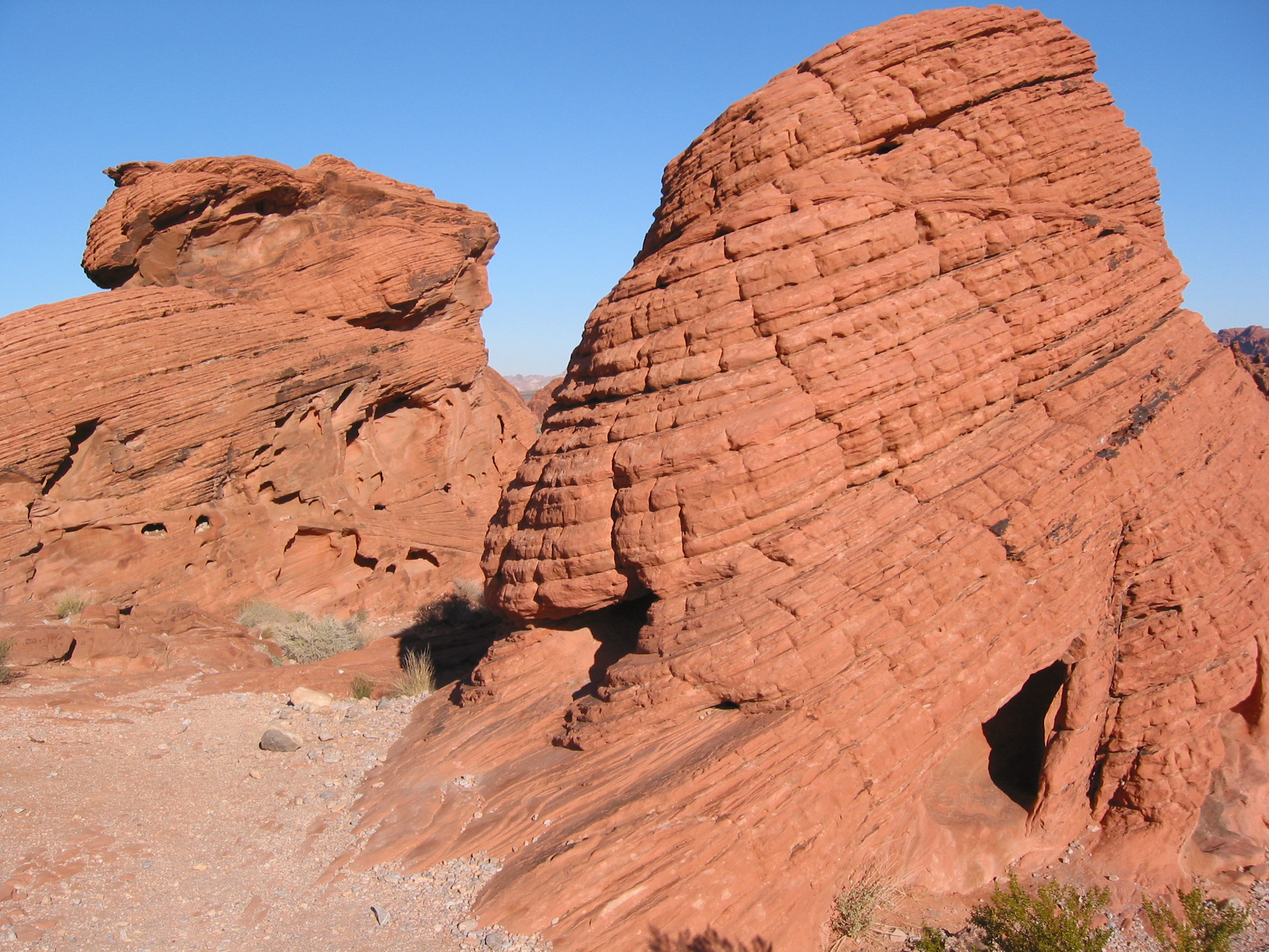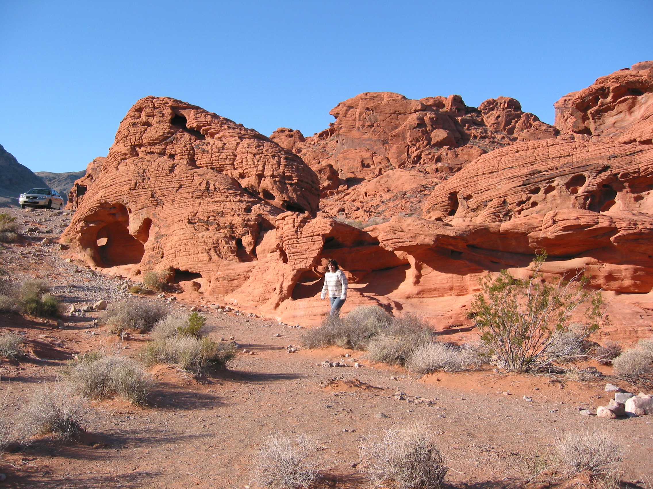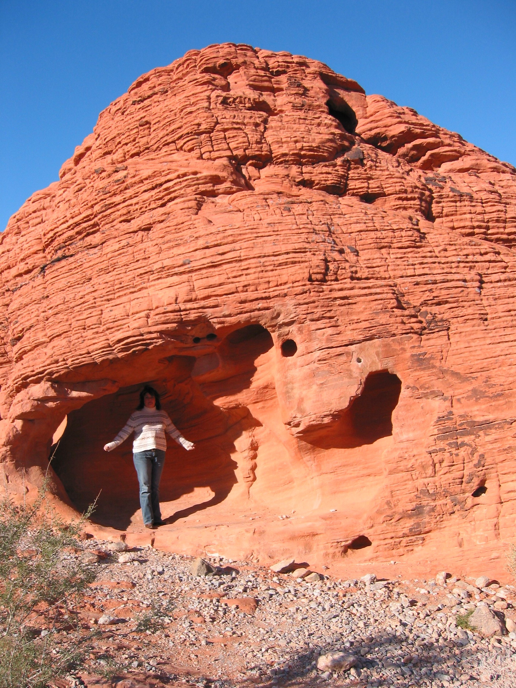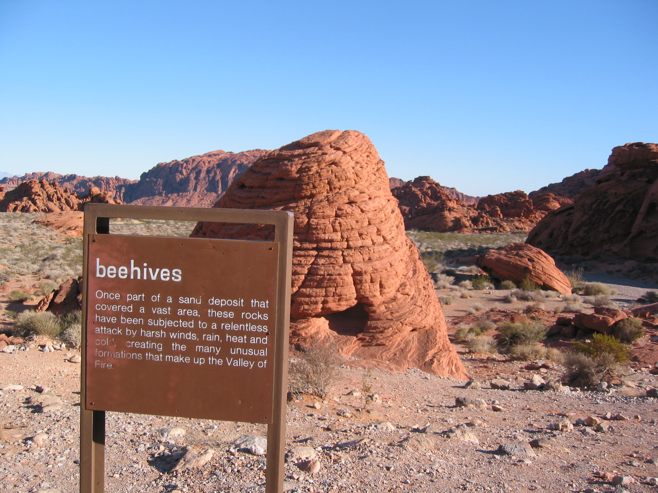 Very cool park. All this red rock in the middle of a lot of gray rock, you can see it on the horizon as you approach. Even M thought this was a good side trip from the lights of Las Vegas. First stop the beehives.
