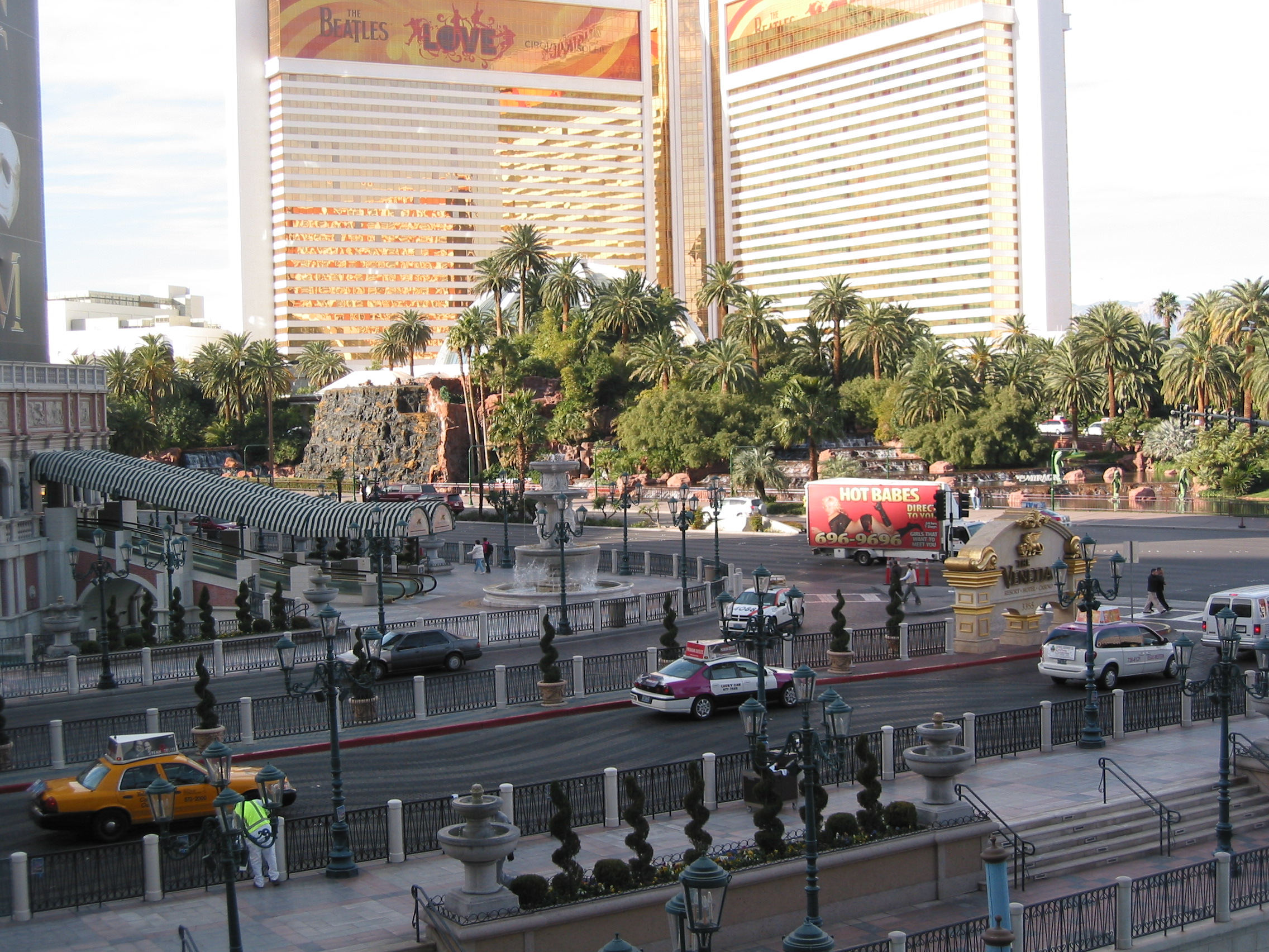 The Mirage across the street. And an advertising truck for escorts out front.